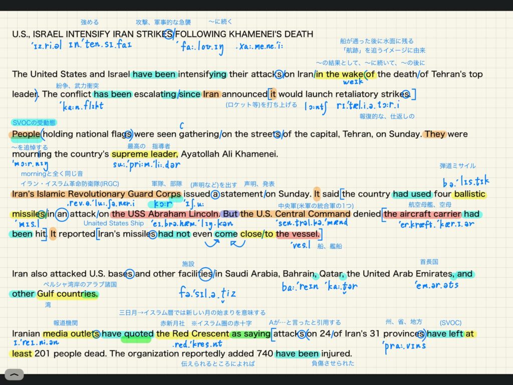 ただし、実際はそこまで難しくありません。ニュースで読み上げられるのは口語英語(話し言葉)であるため、日々学習している学習者の視点では理解しやすい内容です。