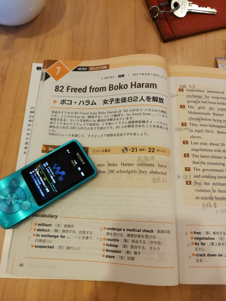 書籍教材と比べると、ニュースで学ぶ「現代英語」がどれだけ最新の教材を扱っているかが分かります。